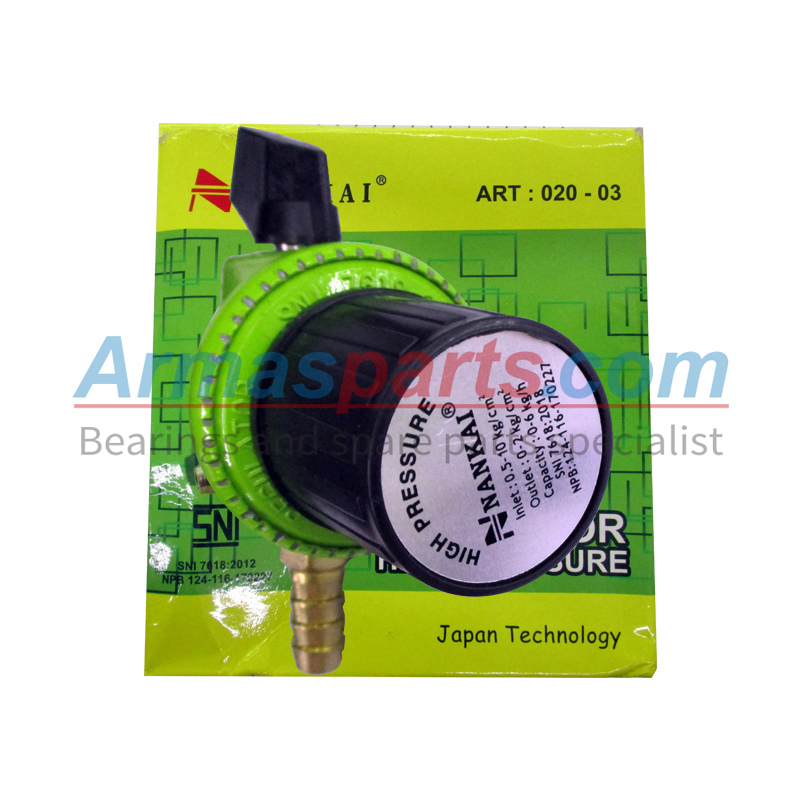 Regulator nankai didesain dengan pengatur keluarnya gas, regulator ini tidak memiliki indikator meter. SNI, Mudah Digunakan, Aman, Tahan Lama.